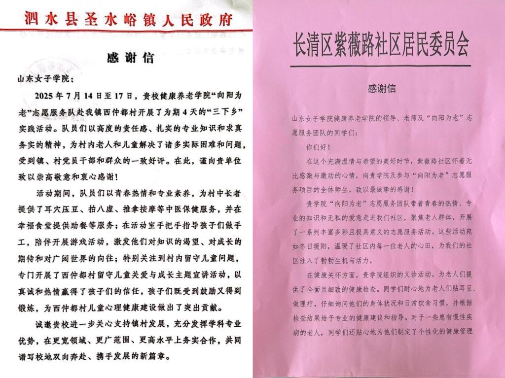 团队的付出得到了紫薇路社区和圣水峪镇人民政府的一致认可,活动结束后,与紫薇路社区共建“大学生社会实践基地”并正式揭牌,仪式上社区领导为团队成员颁发了“优秀志愿者”荣誉证书,从“暑期限定”到“常态共建”,以阵地建设拓延了服务深度。同时,这份认可还化作了一封封饱含深情的感谢信,字里行间满是对团队服务成效的肯定,这些感谢信,既是对过往努力的见证,更是团队继续前行的动力。未来,团队将以实践基地为依托,持续深化校地合作,让专业服务扎根基层,让青春力量在志愿服务中不断绽放新的光彩。