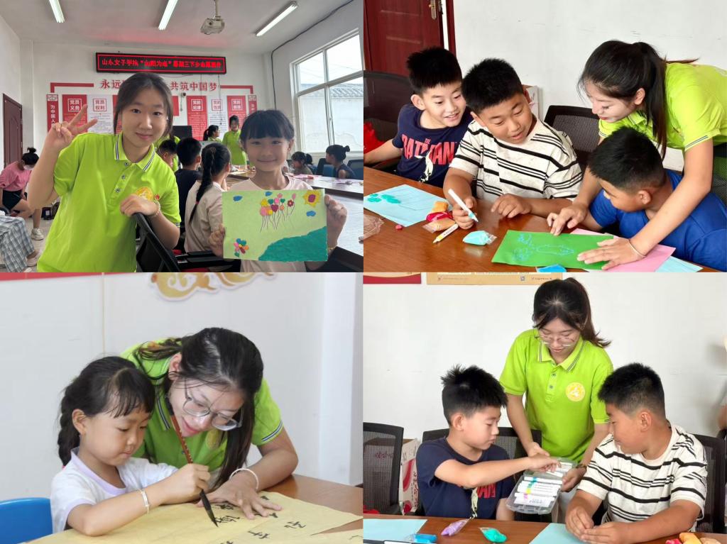 聚焦西仲都村儿童在情绪疏导、安全防护、未来规划等成长过程中的实际需求,团队以“童心向阳・成长护航”为主题,精心设计了情绪认知、防溺水课堂、手工创意、书法体验、职业规划等9项特色活动。“老师,我画的房子会飞,能带着奶奶去北京!”9岁的小雨举着粘土贴画,眼里闪着光。