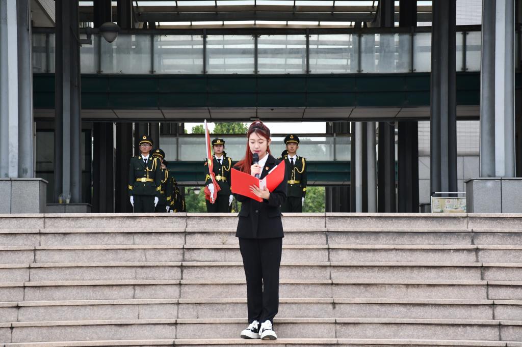 7时30分,英姿飒爽的国旗护卫队迈着铿锵步伐出旗。随后,学生代表做了题为《铭记胜利之光,传承精神之火》的演讲,带领大家回顾抗战历史,缅怀革命先烈,引导同学们从历史中汲取力量,以实际行动践行“强国有我”的青春誓言。歌曲《山河》的深情演唱和手语表演《国家》的动人演绎,以艺术的形式传递了家国情怀与民族精神,赢得了现场师生的强烈共鸣。