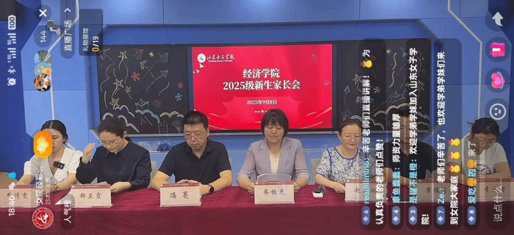 为帮助新生家长全面了解学院办学特色,搭建家校协同育人桥梁,助力2025级新生尽快适应大学生活、明确成长方向,9月8日晚上,经济学院在求真楼515召开2025级新生家长会。经济学院党委书记齐振花、副院长冯亮、崔俊富、国际交流负责人崔倩雯以及2025级辅导员出席会议,与新生家长们相聚云端,共话育人蓝图,会议由党委副书记赵晓琳主持。