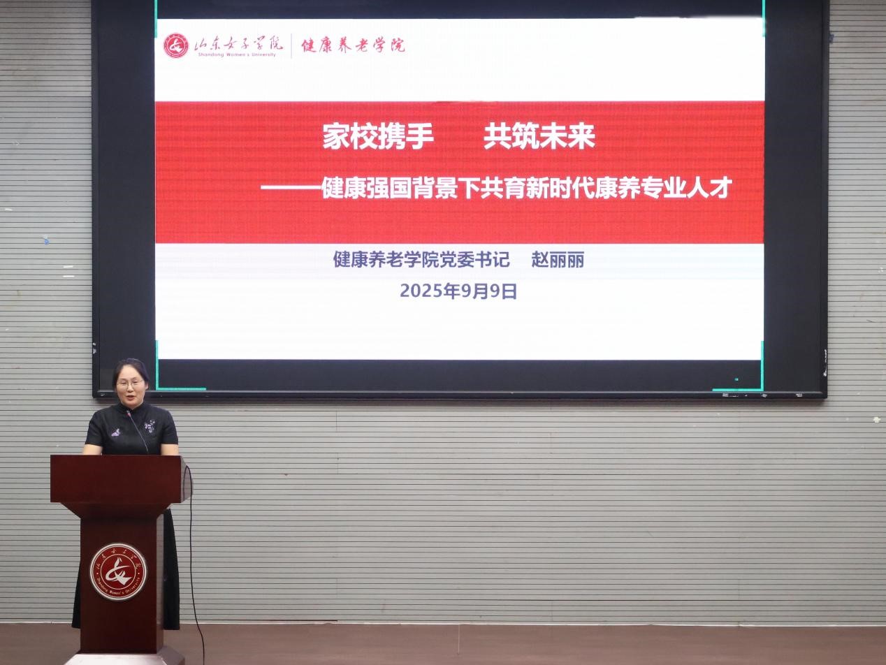 随后,党委书记赵丽丽代表学院向各位家长、老师和同学们表示欢迎与感谢,强调大学是学生塑造人格、确立价值追求的关键阶段,教育成功需家校携手,学院坚守“以学生为本”,重点关注学生思想动态、身心健康发展及专业知识与技能培养,同时向家长提出做“温暖的陪伴者”“智慧的引导者”“稳定的协作者”“成长的同行者”的希望与要求,表达了对家长的祝福和对新生的期许。