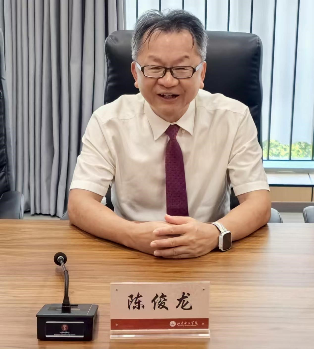 随后,陈俊龙围绕人工智能前沿动态、学科发展方向及国际合作等方面作了精彩分享。他结合自身多年的教学科研经验,对学院在人工智能领域的定位和发展路径提出了宝贵建议,并强调要重视教学主要任务,强化学术研究,提升团队建设,推动创新应用,不断提高学院办学水平和社会影响力。