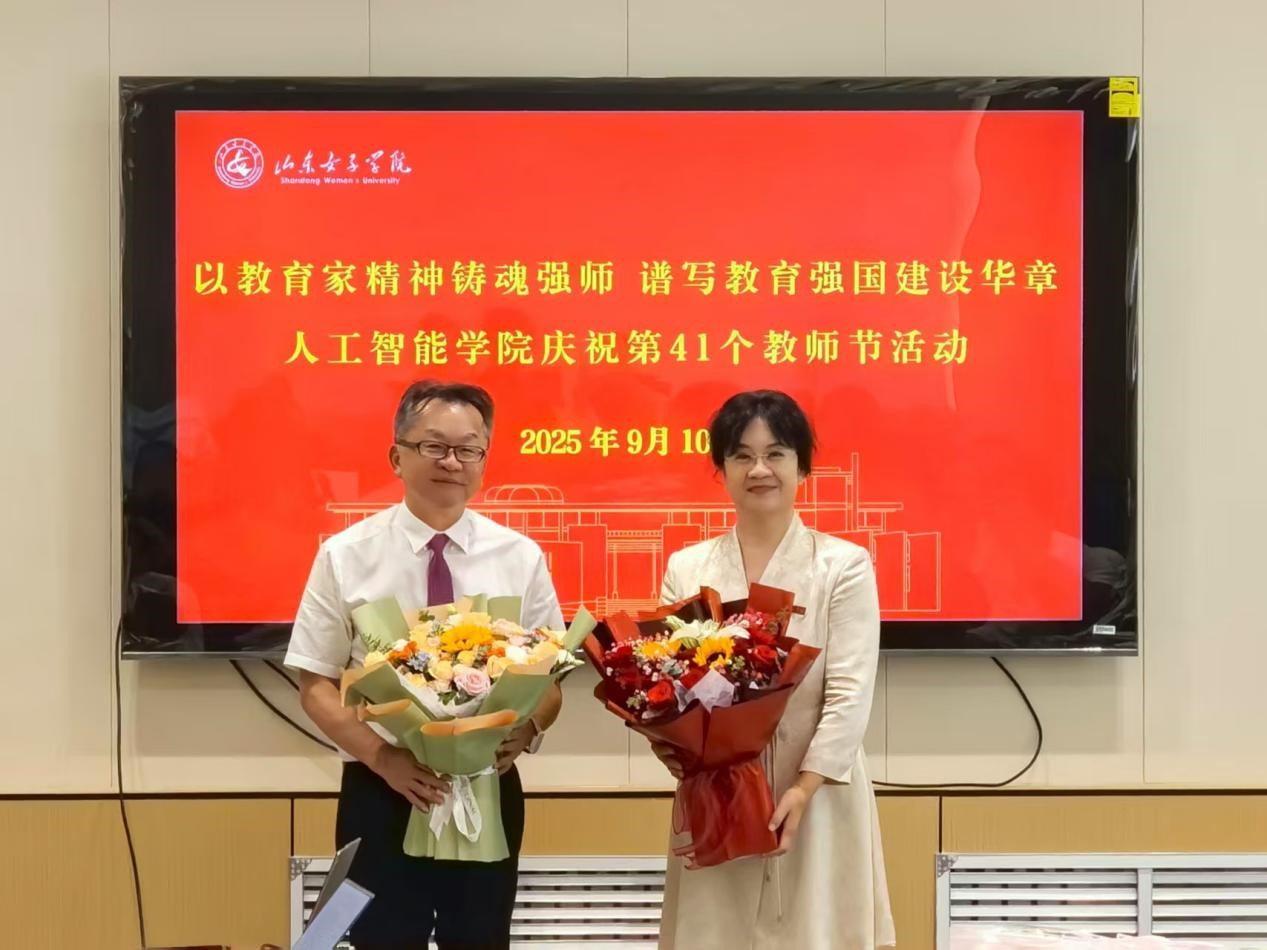学生代表向李光红和陈俊龙献上鲜花,表达学院学子对教师的节日祝福与美好祝愿。