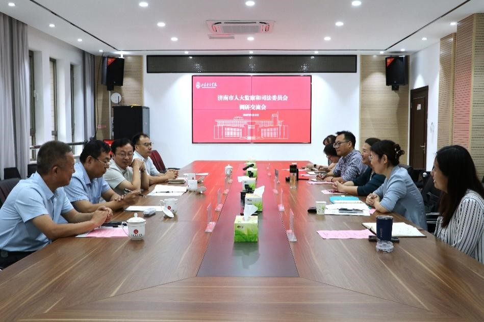 9月12日,济南市人大监察和司法委员会主任委员张永强率调研组一行来校调研交流,就“外语与法律融合发展智库报告”召开专题座谈会。学校副校长李缨出席座谈会,外国语学院和社会发展学院负责人及相关人员参加活动。
