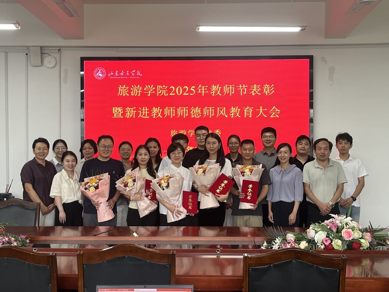 金秋送爽,桃李芬芳。为庆祝第41个教师节,弘扬尊师重教风尚,激励广大教师坚守育人初心、担当教育使命, 9月10日下午,旅游学院举行2025年教师节表彰暨新进教师师德师风教育大会。院长鲁春晓、副院长许爱霞、副院长王晓伟和受表彰优秀教师及全体新进教师齐聚一堂,共话教育、共谋发展。