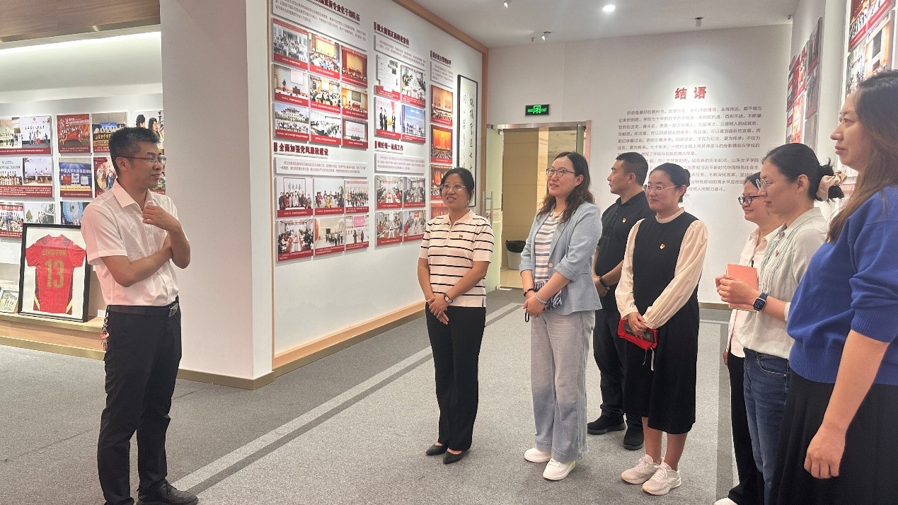 录制结束后,党员们在学院党委书记崔江宁的带领下,走进校史馆开启校史学习环节。馆内承载岁月的老照片串联起学校一代代教职工砥砺奋进的足迹。崔江宁结合珍贵的老照片,生动讲述学校在不同发展阶段深耕教育事业、矢志报国的动人故事:“从建校初期前辈教师心怀热忱、潜心育人,到新时代学校紧扣科技强国战略,着力培养具有创新精神与实践能力的高素质人才,这正是几代女院人坚守‘为国育才’初心,助力莘莘学子成长发展的生动写照。”