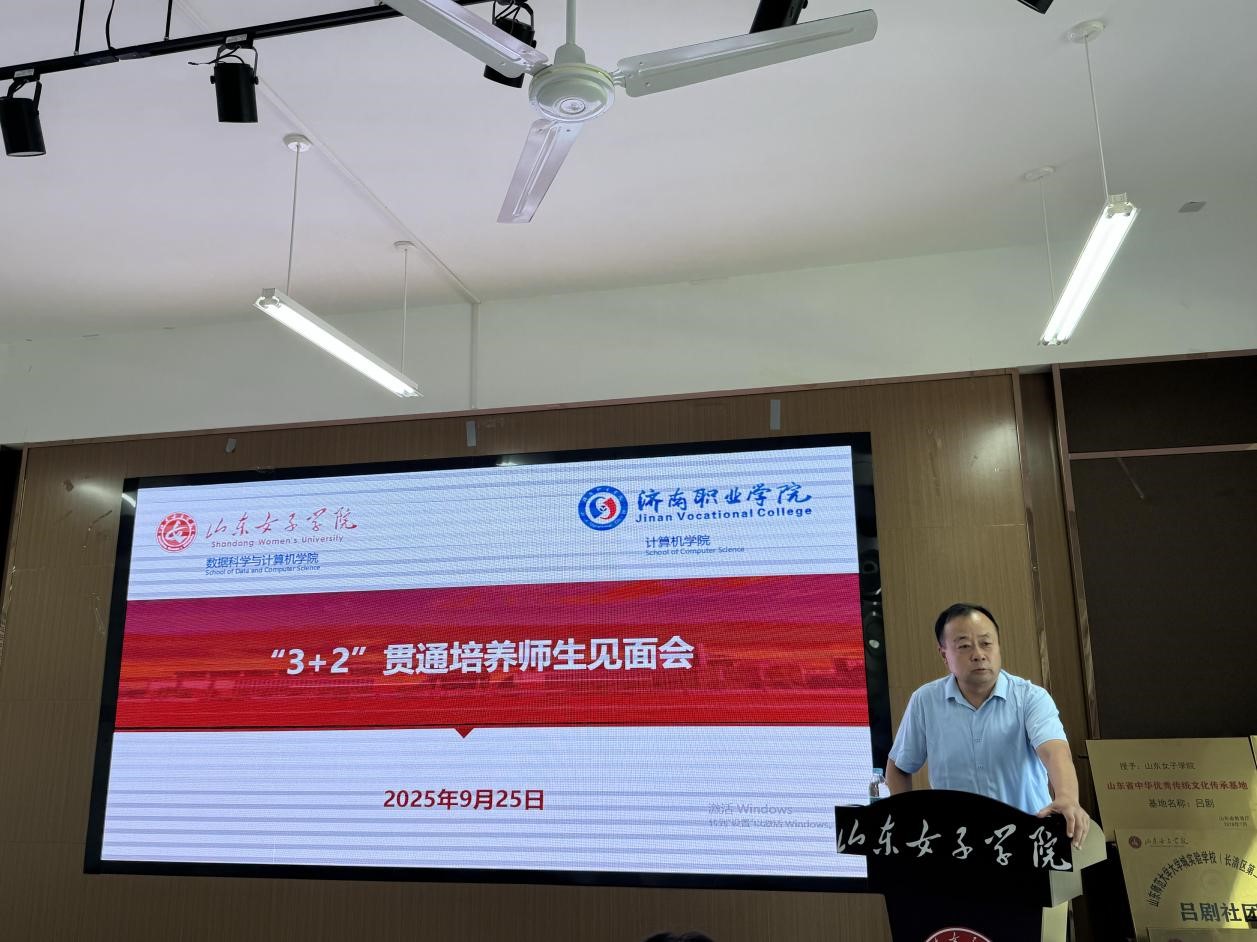 9月25日下午,学校与济南职业学院“3+2”对口贯通分段培养计算机科学与技术专业师生见面会在学校举行。数据科学与计算机学院党委书记张明、院长孙洪峰、济南职业学院计算机学院主任王秀红、两校专任教师,辅导员、学生代表参加了见面会。