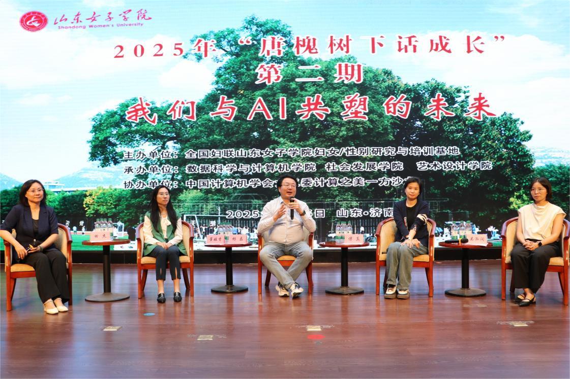 为推进女大学生发展与数字时代深入融合,9月25日,学校邀请四位计算机领域的专家做客唐槐树下话成长活动,本次活动的主题是“我们与AI共塑的未来”。全国妇联山东女子学院妇女/性别研究与培训基地副主任、科研处处长董吉贺出席活动并致欢迎辞,数据科学与计算机学院、社会发展学院、艺术设计学院等院部师生代表200余人参会。社会发展学院女性学教研室教师王姝琼博士主持开幕式。