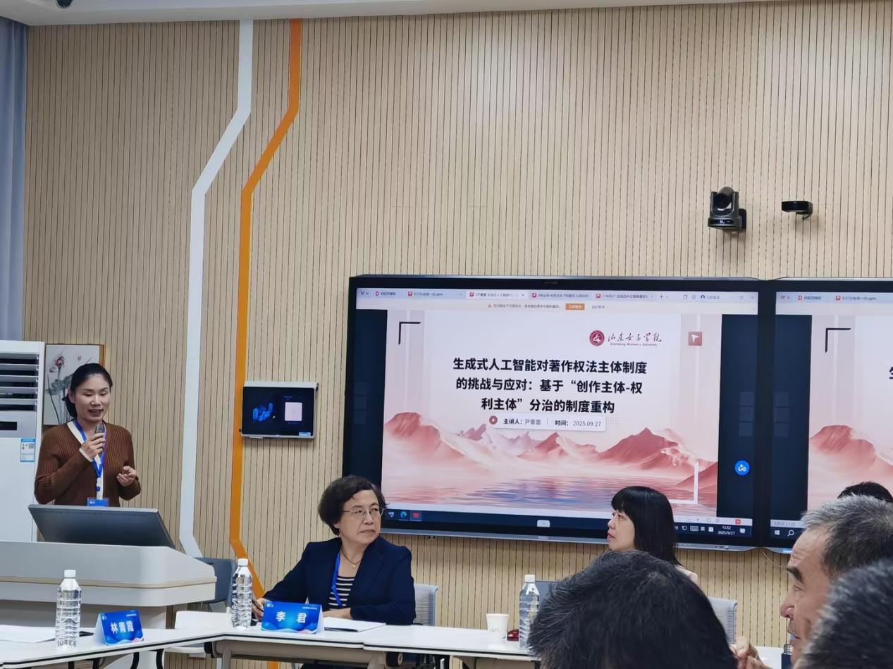 在“AI技术风险与法治应对”分论坛中,社会发展学院教师尹蕾蕾就“生成式人工智能对著作权法主体制度的挑战与应对”作专题发言,引发与会学者热烈讨论。社会发展学院副院长王绍霞、学校台港澳事务办公室主任李君分别主持分会场单元与谈环节。