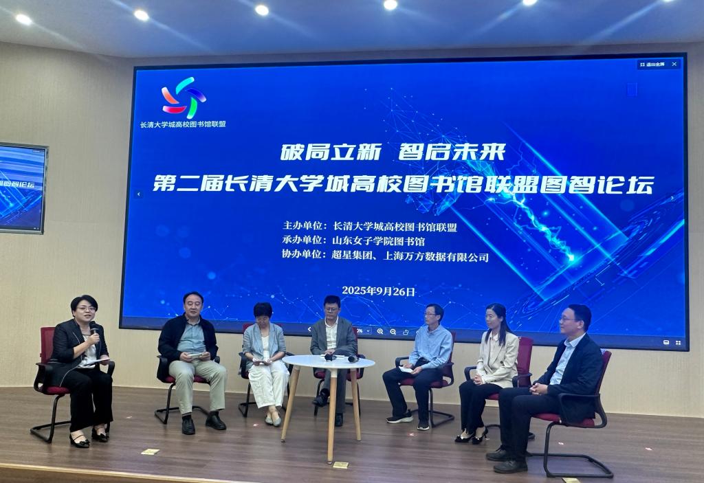 9月26日,由长清大学城高校图书馆联盟主办、学校图书馆承办的第二届长清大学城高校图书馆联盟图智论坛顺利举行。来自长清大学城高校图书馆联盟成员馆和济南大学、山东建筑大学、山东财经大学、山东理工大学等18所高校的图书馆馆长及业务骨干齐聚一堂,围绕“高校图书馆高质量发展新生态构建”展开深入探讨与交流。会议由学校图书馆馆长成曙霞主持。