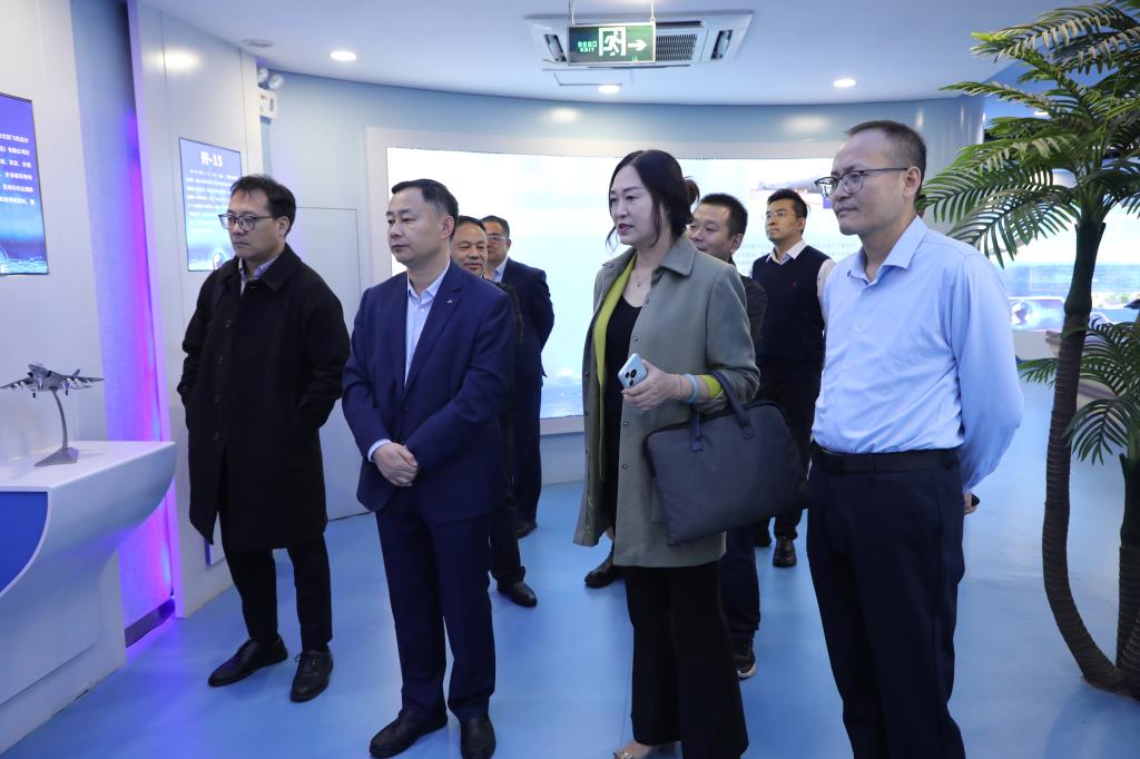 在昌乐县第一中学,调研组在党委书记、校长陈子友等负责同志的陪同下,实地参观了海军航空馆,深入了解学校在国防教育与特色课程建设等方面的实践成果。