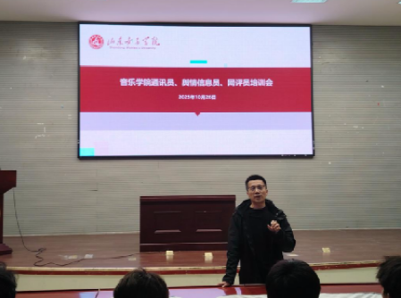 为全面加强宣传思想工作队伍建设,10月26日晚,音乐学院在图书馆一楼报告厅举办“三支队伍”专题培训会。学院党委书记曲常军、党委副书记吕梅出席会议,学院全体通讯员、网评员及舆情信息员参加培训。