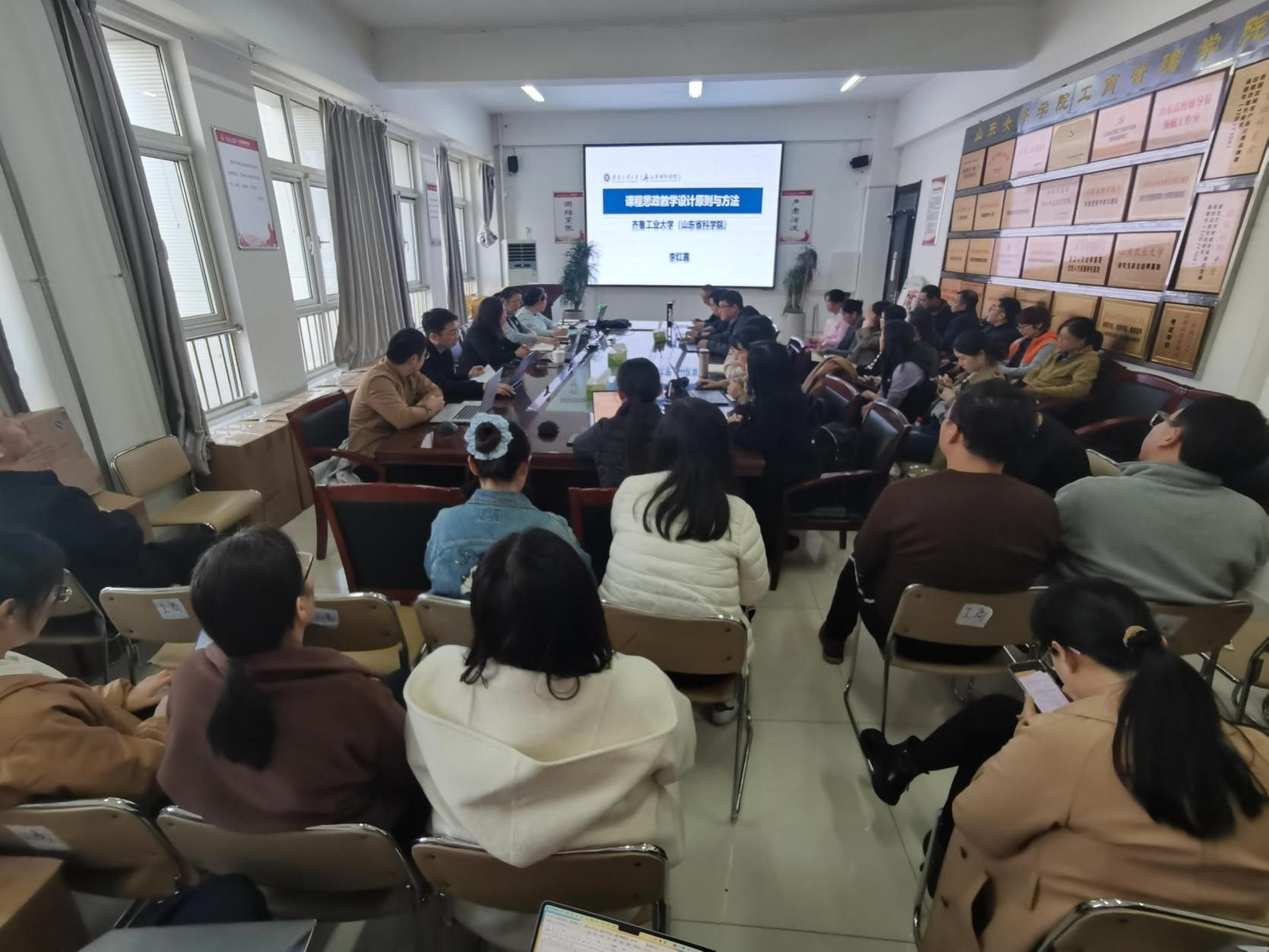 10月29日,工商管理学院举办课程思政专题讲座,邀请齐鲁工业大学(山东省科学院)课程思政研究院执行院长李红霞副教授主讲。学院党委书记耿华主持讲座,学院全体教师参会,马克思主义学院黄丽萍老师受邀列席。