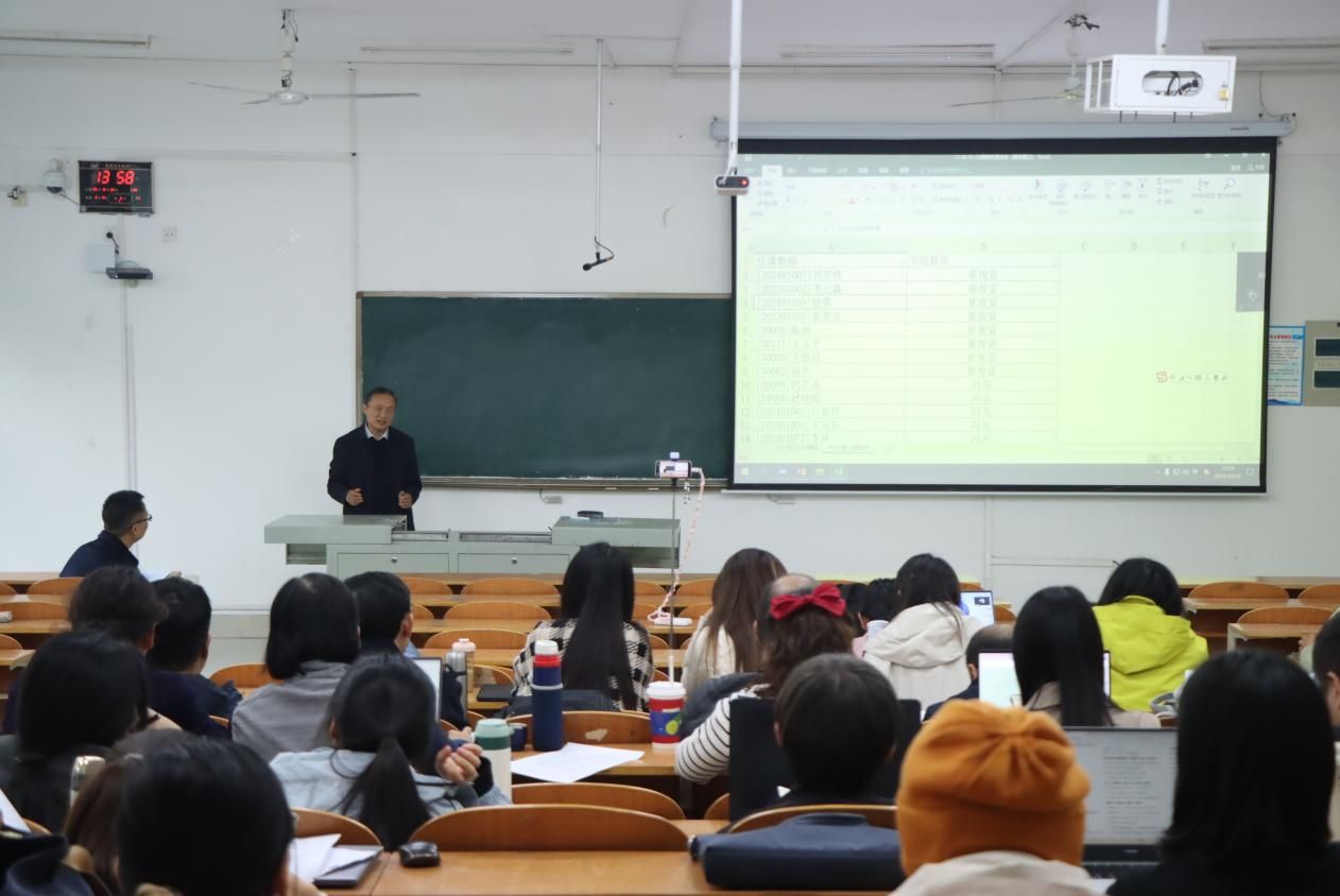 会议伊始,齐振花在致辞中强调了教学观摩活动在促进教师专业成长、推动教学方法创新方面的重要意义,强调课堂教学是立德树人的主阵地,教师要不断探索教学艺术,提升课堂吸引力与育人实效。随后,沈传河围绕“教学的规范性与前瞻性”发表讲话,并结合当前高等教育发展趋势,指出教师应在严守教学纪律与规范的同时,注重将学科前沿、思政元素有机融入教学内容,实现知识传授与价值引领的有机统一。接着,崔俊富进一步从教学组织与课程设计的角度,提出教师要善于运用案例教学、互动研讨等多元化手段,激发学生主动思考与参与,打造具有“高阶性、创新性、挑战度”的“金课”。