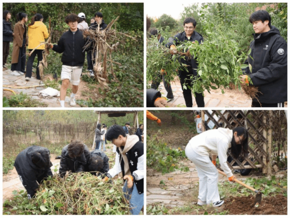 劳动现场,同学们分组投身各项农事任务,干劲十足。刨地瓜环节,大家先细心剪除地瓜秧,再挥镐刨挖,随手清理地瓜表面泥土后快速装袋,最后合力将地块平整;清理玉米地时,同学们齐心协力将玉米秆连根刨出,逐一归拢后把土地梳理平整;辣椒地清理中,大家弯腰拔除辣椒秆,再对地块进行细致平整,最后集中清理田间的玉米秆、辣椒秆等秸秆杂物,让农田恢复整洁。