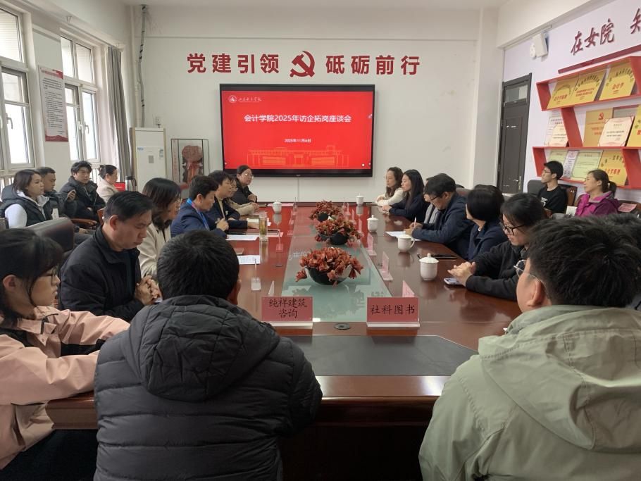 访企拓岗座谈会聚焦于新形势下财会人才的培养与输送,田立新向企业方介绍了学校在创新型人才培养方面的举措与成效。会计学院院长冯华重点介绍了学院2026届毕业生的总体情况。双方就校企合作模式进行了务实探讨,并在建立人才共育长效机制上达成重要共识。