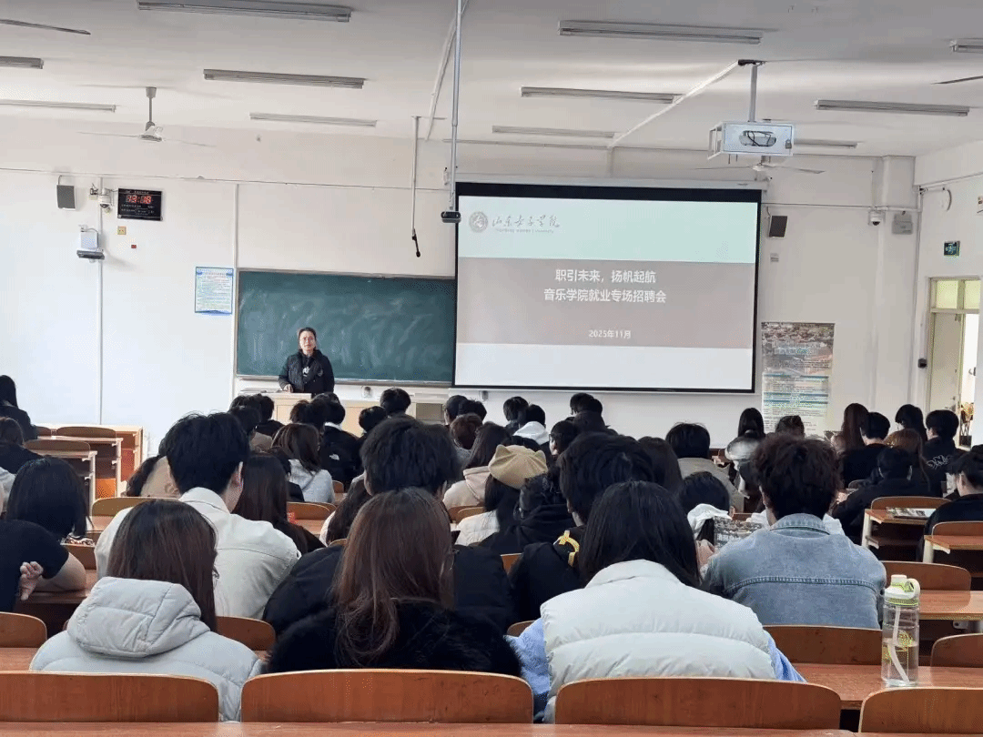 为拓宽学生实习就业渠道,精准对接行业人才需求,11月6日,音乐学院专场招聘会在博文楼302顺利举行。学院党委书记曲常军、党委副书记吕梅,明水古城相关负责人,以及2022、2023级全体学生和2024、2025级舞蹈专业部分学生共同参会。会议由吕梅主持。