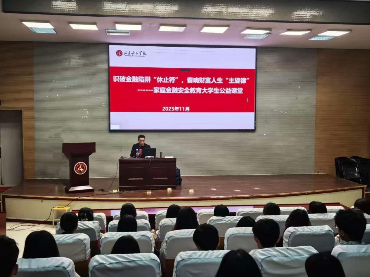 本次讲座特邀山东财经大学公共管理学院系主任韩琭教授担任主讲。韩琭教授以“金融风险识别与安全防护”为主题,结合“杀猪盘”、代办信用卡、冒充客服和网络刷单等高发案例,深入剖析了诈骗分子的作案手法与核心套路,警示同学们务必提高警惕,远离金融陷阱。