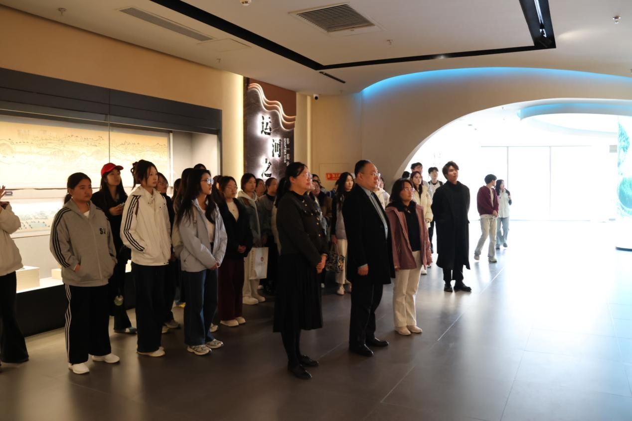 在戴村坝博物馆,师生一行深入了解了这座中国古代水利工程奇迹的建造历史、科学原理及其在漕运史上的重要地位。从明清时期的选址规划到匠心独运的坝体结构,从防洪灌溉的核心功能到对京杭大运河航运的关键支撑,一幅幅历史画卷、一件件实物展品、一个个动态模型,生动展现了古代劳动人民的卓越智慧与坚韧品格。戴村坝“拦汶水济运道”的巧妙设计及其数百年来展现出的科学价值与坚韧精神,引发了同学们对古代劳动人民智慧和力量的深深敬佩。魏崇红在与学生交流时提到,戴村坝的稳固与高效,离不开精确的设计与持续的维护,希望同学们能从中学到严谨细致、精益求精的态度,并将其运用到未来的专业学习和个人成长中。