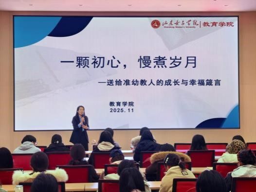 为深化校企合作、拓宽学生就业渠道,助力学生明确职业方向、提升综合素养。11月20日下午,教育学院邀请山东财润知远教育集团来校开展专题宣讲暨访企拓岗专项行动。活动在求真楼报告厅举办,宣讲会由班主任代表侯菲菲主持,银丰山庄幼儿园园长王静担任主讲嘉宾,党委副书记路敏、部分班主任、就业辅导员、25级学生代表参会。