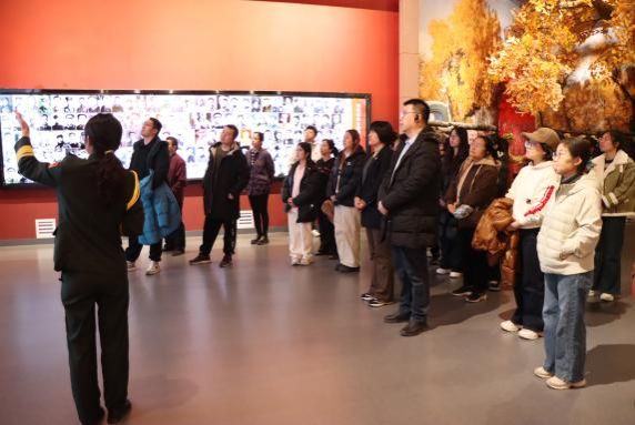 红色足迹随即延伸至山东老战士纪念广场。历史陈列馆内,众人跟随讲解员,依托详实史料与珍贵抗战文物,系统学习山东军民艰苦卓绝的抗战历程,深刻领悟“初心如磐、信仰如炬”的精神伟力。在广场中央老战士纪念丰碑前,全体人员满怀敬意列队致敬,向为民族独立、人民解放事业英勇献身的先辈致以深切缅怀。