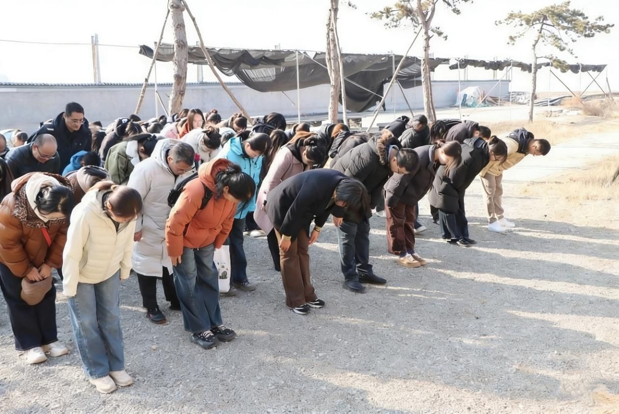 师生列队前往徂徕山烈士陵园。庄严肃穆的纪念碑前,四名学生代表敬献花篮,学院党委书记齐振花、副院长冯亮细致整理挽联;全体人员肃立默哀,在深沉静穆中缅怀英烈伟绩、汲取奋进力量。
