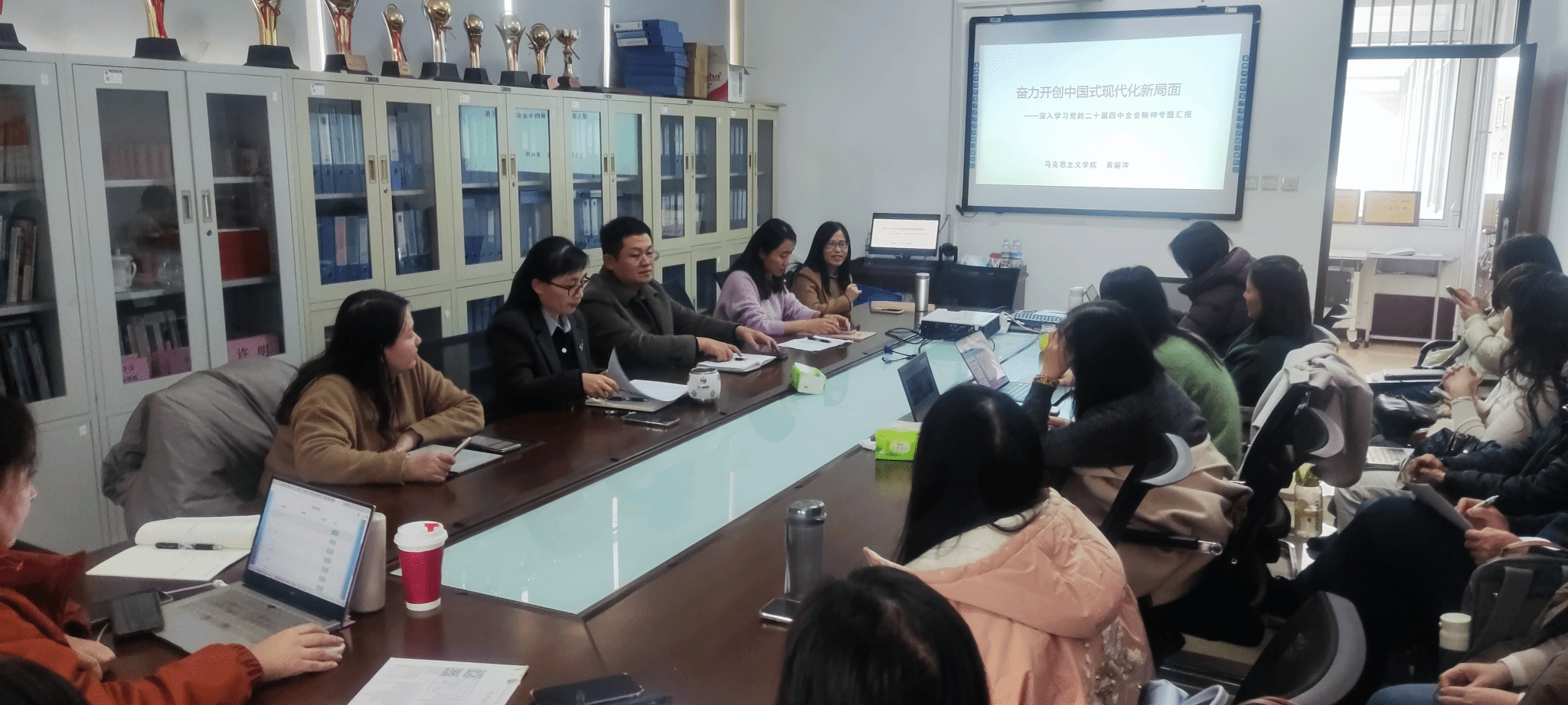 为深入学习贯彻党的二十届四中全会精神,推动全会精神融入教育教学与人才培养,12月4日下午,传媒学院举办学习党的二十届四中全会精神专题讲座,邀请马克思主义学院副教授黄丽萍作辅导报告。讲座由党委书记李霞主持,全体教师参加学习。