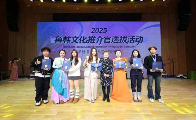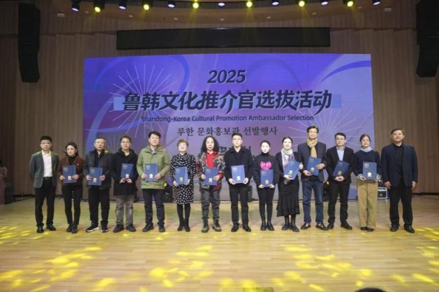 12月20日,由山东演艺集团、山东国际传播中心、走向世界杂志社《金桥》编辑部、韩国文化体育振兴院联合主办的“2025鲁韩文化推介官选拔活动”总决赛暨颁奖典礼在济南隆重举行。山东演艺集团党委书记、董事长解东,山东省委宣传部对外传播处副处长孙宪超,韩国文化体育振兴院代表张红等主办单位及相关单位领导、专家评委出席活动。