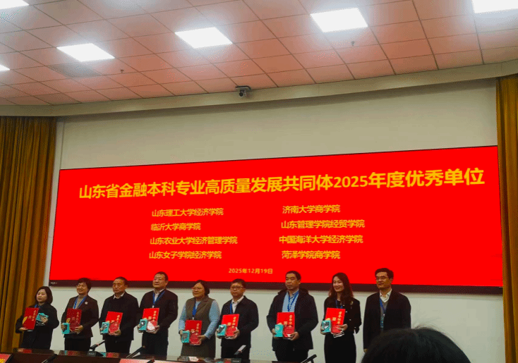 本次大会旨在总结过去一年山东省金融本科专业在高质量发展共同体建设方面的成果与经验,谋划未来发展方向。学校经济学院凭借在金融学类专业建设、人才培养模式创新、教学改革深化等方面的扎实工作和显著成效,获得了共同体成员单位及专家评审组的一致认可,荣获年度“优秀单位”称号。
