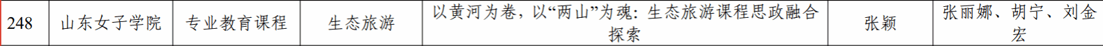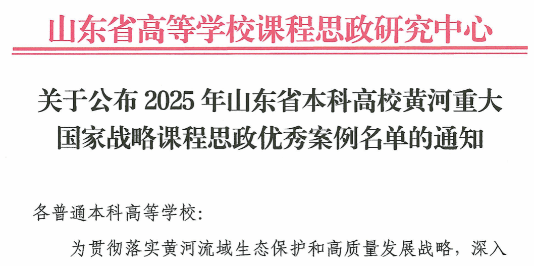 近日,山东省高等学校课程思政研究中心公布了2025年山东省本科高校黄河重大国家战略课程思政优秀案例名单。旅游学院选送的《生态旅游》课程案例《以黄河为卷,以“两山”为魂:生态旅游课程思政融合探索》成功入选。该案例由张颖老师担任负责人,团队成员包括张丽娜、胡宁、刘金宏三位老师。