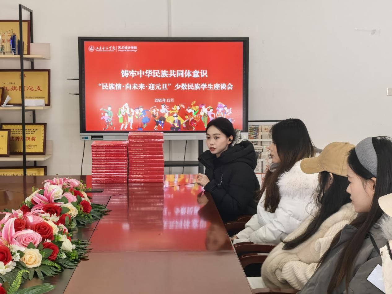 12月25日下午,艺术设计学院召开“铸牢中华民族共同体意识”暨“民族情、向未来、迎元旦”少数民族学生座谈会。学院党委书记颜涛、党委副书记叶小华、辅导员代表与十余位少数民族学生齐聚一堂,交流思想,共话成长。