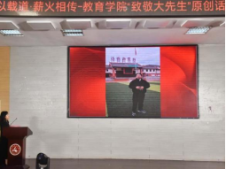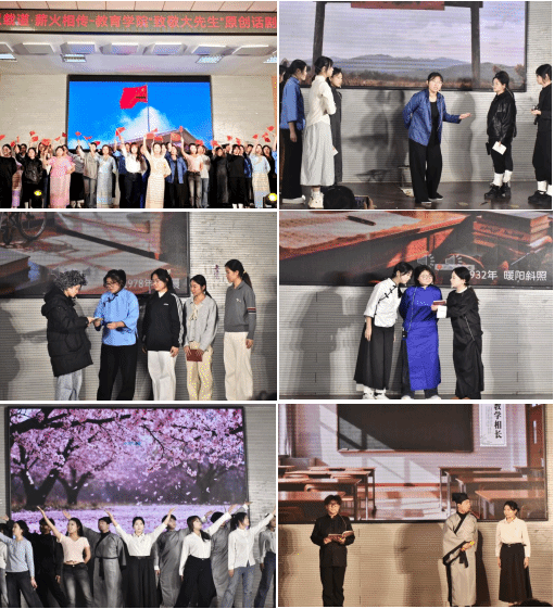 为厚植师范生师德情怀,传承教育家精神, 12月25日下午,教育学院“师以载道·薪火相传——致敬大先生”原创话剧展演于图书馆一楼报告厅举行。校团委书记孙利华、教育学院院长王飞、辅导员、学生代表共同参与本场活动,活动由路敏主持。