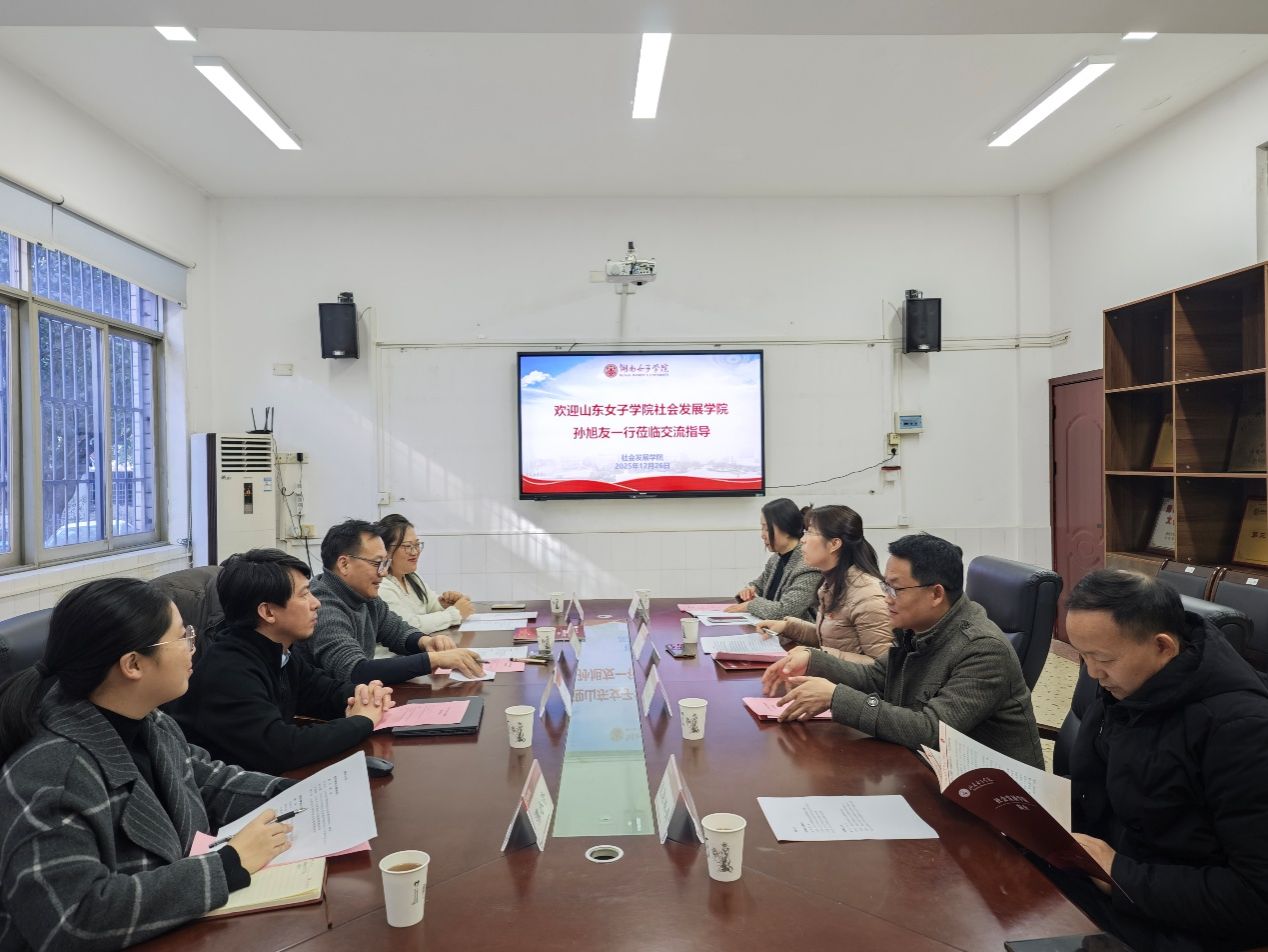 12 月 26 日,社会发展学院院长孙旭友带队,携社会工作、女性学等专业负责人及骨干教师一行4人,赴湖南女子学院社会发展学院开展调研交流。湖南女子学院社会发展学院院长黄臻、副院长刘海云及家政学、社会工作、女性学等各教研室骨干人员热情接待。