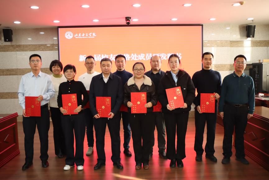 合作发展处负责人宣读校友总会同意换届的批复文件,陈昊当选会长,崔雷、郑园园、臧广越当选副会长,刘文嘉出任秘书长,杨克龙、宋荣伟、陈佳琦担任副秘书长。经济学院相关负责人为新一届理事会成员颁发聘书,杨恩红、合作发展处负责人为德州校友联络处授牌,标志着德州校友联络处工作正式迈入新阶段。