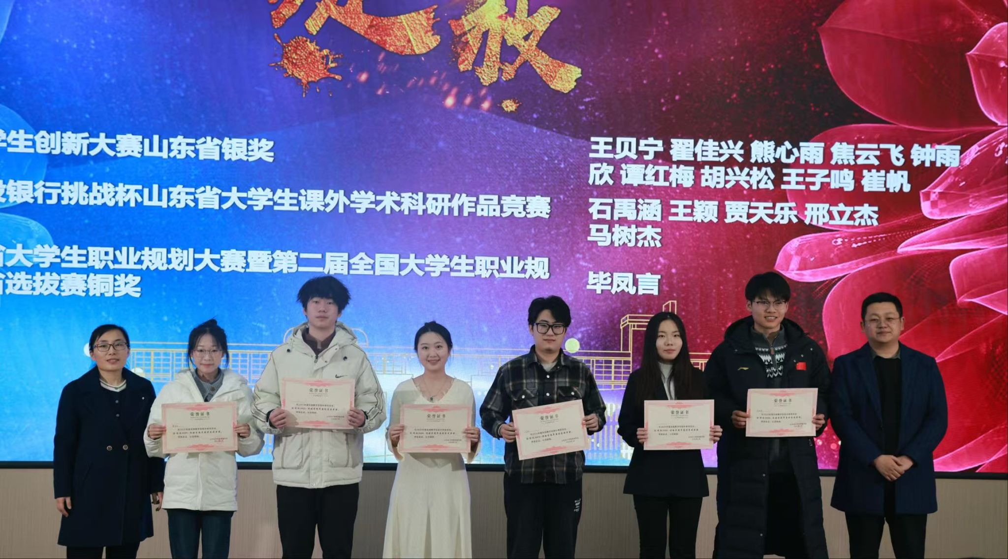 2025年,学院在国家社科基金项目、省级教学成果奖、国家一流本科课程、社会服务、学科竞赛中均实现了突破,取得历年来最好成绩。活动中,学院为取得突破的教师、学生颁发荣誉,表彰先进。