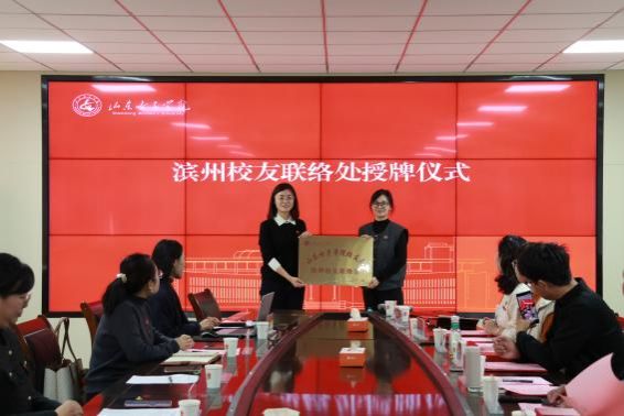 在热烈的掌声中,学生工作处副处长赵聪与会计学院党委副书记李晨共同为新当选的理事会成员颁发了聘书。路宁代表学校为滨州校友联络处授牌,标志着新一届理事会正式履行职责。
