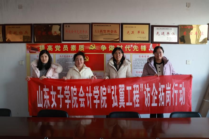 严冬虽寒,温情常在。为落实立德树人根本任务,切实关爱家庭经济困难学生,同时深化产教融合,拓宽学生就业渠道,1月21日,会计学院党委书记尹衍梅、副书记李晨带领两名辅导员前往泰安肥城和东平两地,扎实开展了“家访+访企拓岗——弘翼工程”专项活动。