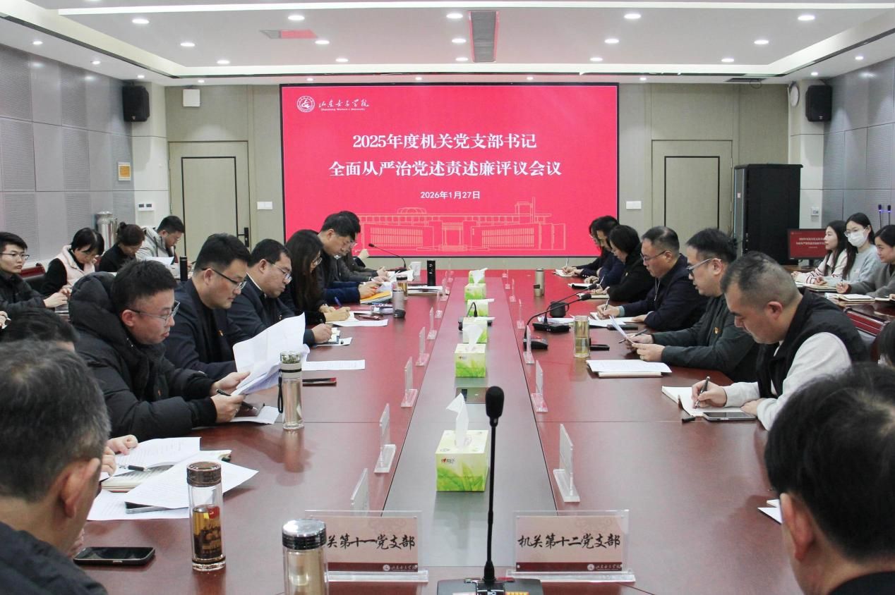 1月27日下午,机关党委召开2025年度党支部书记全面从严治党述责述廉评议会议。学校党委副书记龙希利出席会议并讲话,机关党委负责人主持会议,机关党委委员、全体党支部书记参加会议。