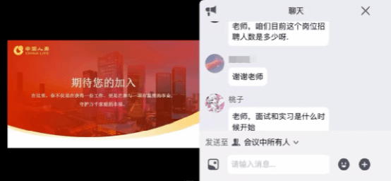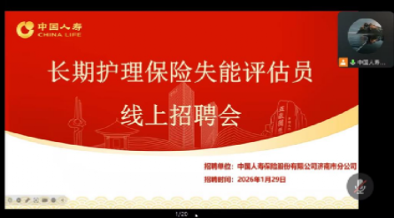 为深化产教融合、拓展就业渠道,助力学生实现高质量就业,1月29日下午,中国人寿保险股份有限公司济南市分公司面向健康养老学院学生举办线上专场招聘会。本次招聘会由学院党委书记赵丽丽主持,教研室主任赵娜、辅导员于苗及相关专业学生在线参加。