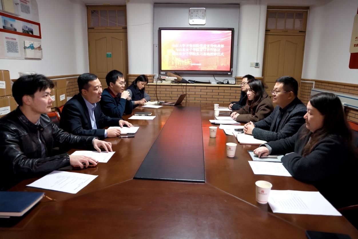 1月30日,传媒学院赴山东大学齐鲁医院党委宣传统战部开展访企拓岗活动。传媒学院院长李百晓、党委副书记郑全蕾、副院长郭静及相关工作人员,与山东大学齐鲁医院党委宣传统战部部长李宁、副部长王磊及相关科室负责人参加了本次活动。双方围绕人才培养、实习实践基地、实习就业双基地建设等内容进行了深入探讨,并举行合作协议签约暨实习基地授牌仪式。
