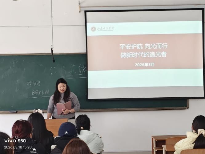 春启新程,逐光而行。为全面落实学校关于2026年春季学期安全开学“第一课”教育活动实施方案,切实强化学生安全防范意识,引导学生快速收心归位、融入新学期学习生活,工商管理学院紧扣“平安护航 向光而行——做新时代的追光者”活动主题,组织全院各班开展“开学第一课”主题班会教育活动。本次班会由各班辅导员、班主任主持,班会结构紧凑、内容重点突出,涵盖安全防护教育、新学期奋进动员与成长发展引导等多方面。全体在校学生参与教育活动。