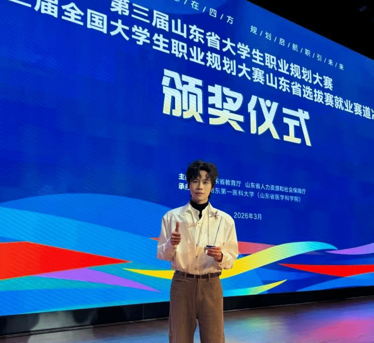 3月10日-16日,第三届全国大学生职业规划大赛山东省决赛圆满收官。学校学子历经校赛遴选、省级复赛角逐脱颖而出,就业赛道邵长昊同学摘得银奖,成长赛道马善润同学获铜奖,赛事成绩较往届实现全新突破,充分展现了学校学子扎实的专业素养与优秀的职业规划能力。