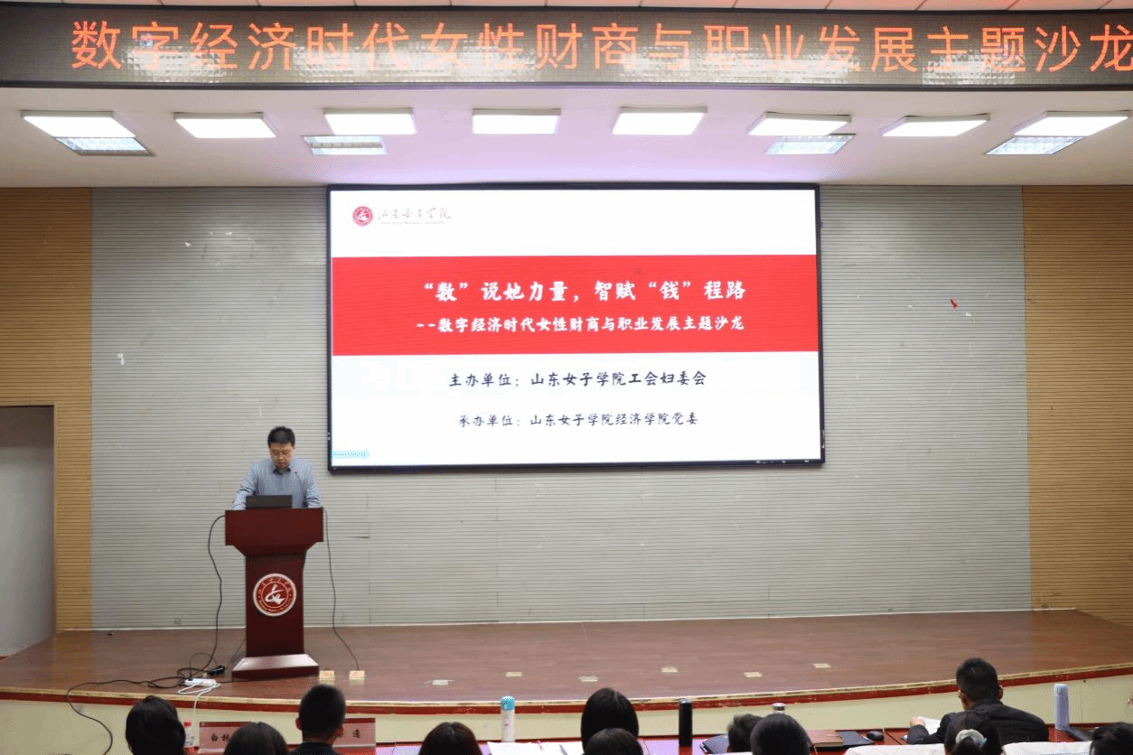 3月12日下午,由山东女子学院工会妇委会主办、经济学院党委承办的“数”说她力量,智赋芳华路——数字经济时代女性财商与职业发展主题沙龙在图书馆一楼报告厅举行。活动特邀银河证券山东分公司财富管理业务条线负责人辛通、机构业务条线负责人白林卉作为分享嘉宾,经济学院党委书记齐振花,院长沈传河,党委副书记赵晓琳,副院长冯亮、崔俊富出席活动,来自各学院各专业的师生代表共同参与。