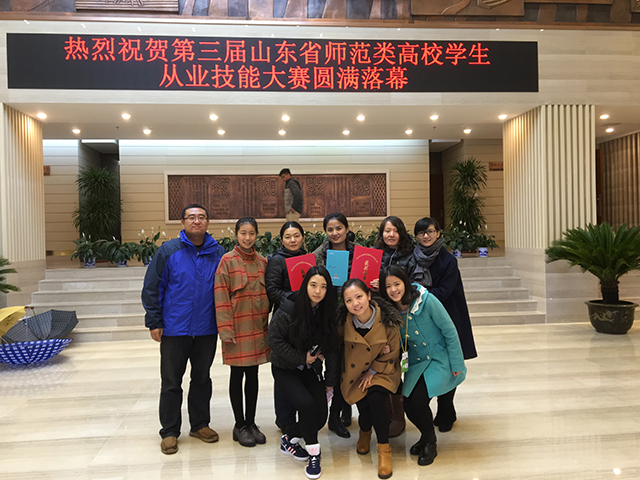 近日,第三届山东省师范类高校学生从业技能大赛在鲁东大学举行。来自全省24所高校的300名选手参加了大赛。经过激烈地角逐,我校学前教育专业的学生们在大赛中分别荣获学前学段一等奖、小学英语学段二等奖和三等奖,徐伟老师在大赛中荣获优秀指导教师称号。
