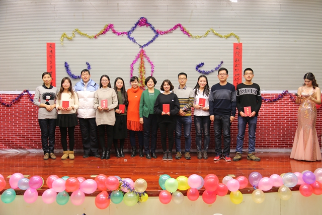 晚会表彰了2016年度优秀学生记者、解说员和微信团队成员,与会领导为获奖学生颁奖。本次联欢活动内容丰富,精彩节目纷呈,高潮迭起,掌声不断。开场舞《worth it》热辣火爆,嗨动全场;《月半小夜曲》借一弯月牙,勾勒回忆;一段《三句半》表演,将中国民间群众传统曲艺表演形式表现的淋漓尽致;一曲葫芦丝《小夜曲》和惊鸿舞惊艳四座;诗朗诵《青春中国》慷慨豪迈,描绘青春中国;韩舞《我最红》韩范儿爆棚而不失浪漫;相声《满腹经纶》幽默风趣而不失气度和姿态;歌曲《告白气球》六种语言演绎诗意告白;诙谐的反串小品《甄嬛传》和《白蛇歪传》席卷来潮,演绎别样的搞笑逗趣;歌曲《典狱司》青春脱俗;搞笑舞蹈和《手舞足蹈传成语》小游戏,惊喜的抽奖活动让现场欢笑不断,惊喜连连。最后一曲《相亲相爱》将大家的心凝聚,2017迎联欢晚会温暖闭幕。
