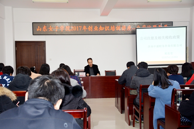 为进一步提升学校创新创业教师的指导能力和水平,更好服务学生成长成才,学校创新创业教育领导小组办公室邀请专家举办针对创业师资能力培训讲座。3月10日上午,首场讲座在第四会议室举行。济南中盛财务咨询有限公司董事长祖连堂主讲“创业师资能力培训讲座之一——公司开业指导”,学校全体专兼职团干部、辅导员、兼职班主任、各学院创新创业导师以及学生共计60余人聆听讲座。