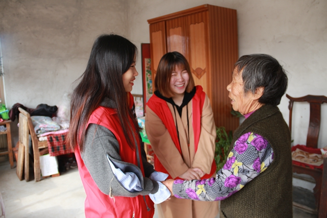 活动中,志愿者们深入到万德镇东侯村,走访了10户贫困家庭,给老人们带去了食用油、面粉、收音机以及志愿者们连夜制作的手工作品等慰问品。志愿者与老人们的亲切交谈,为老人整理家务,还为老人们送去歌声与欢乐,送上舒心的关爱和温暖。