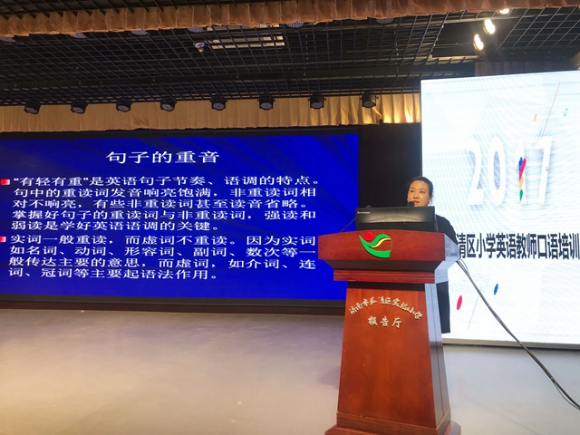 培训中,两位教师分别就英语音素发音、语流音变、重音节奏、意群划分、语音语调、朗读技巧等内容,通过重点讲解、现场互动等方式,结合大量实例,进行了细致的讲授与展示。培训形式灵活、重点突出,现场气氛热烈,取得了非常好的培训效果,受训教师普遍反馈收益良多,相关领导对此次培训给予了高度评价,认为培训对提高长清区小学英语教师专业素质起到了重要作用,并专门向学院及2位主讲老师表达了诚挚的谢意。