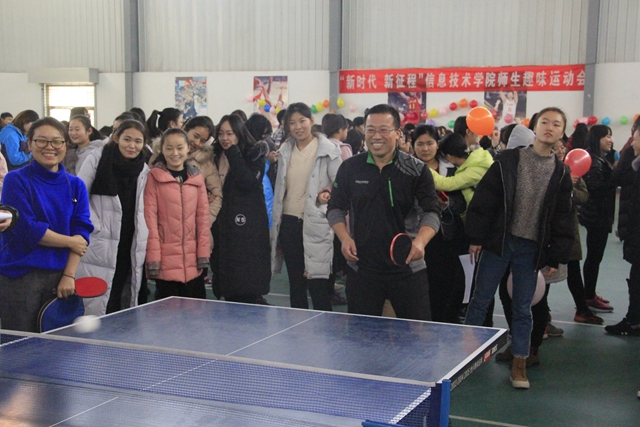 为学习宣传贯彻党的十九大精神,营造“我运动,我健康,我快乐”的校园文化氛围,培养师生之间团结协作精神,促进导师与学生之间的交流与互动,增强学院凝聚力,12月7日,信息技术学院在综合训练馆举办“新时代,新征程”师生趣味运动会,全院师生代表500余人参与此次活动。