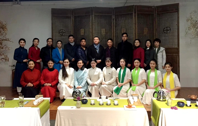 12月17日,山东女子学院旅游学院茶艺队受禾境茶书院的邀请,参加了由禾境茶书院和紫藤美术馆联合举办的“每月·茶约”三周年岁末跨年茶会。杨政、鲍知音、曾盛瑶和张笑萌等4名同学在指导教师张丽娜老师和魏越老师的带领下演绎了体现当代女大学生与中华传统茶艺情缘的主题茶艺——《从来佳茗似佳人》。
